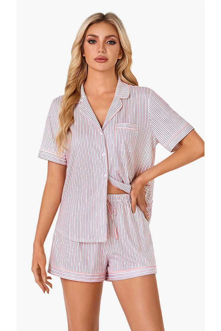 Women's Pajama Sets Striped Button Down Pi Set Sleepwear Shirt and Shorts Two Piece Lounge Sets