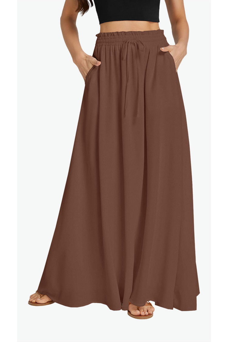 Women's Shirred Smocked Frill Drawstring Pleated High Waist Solid Maxi Skirt