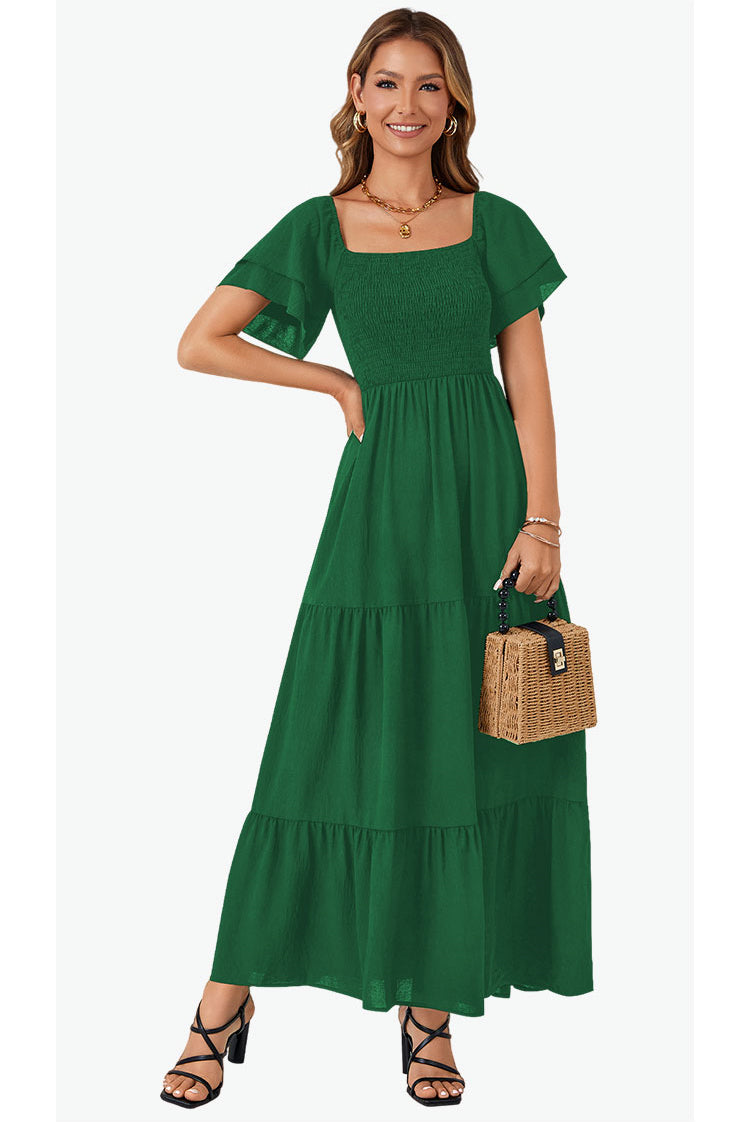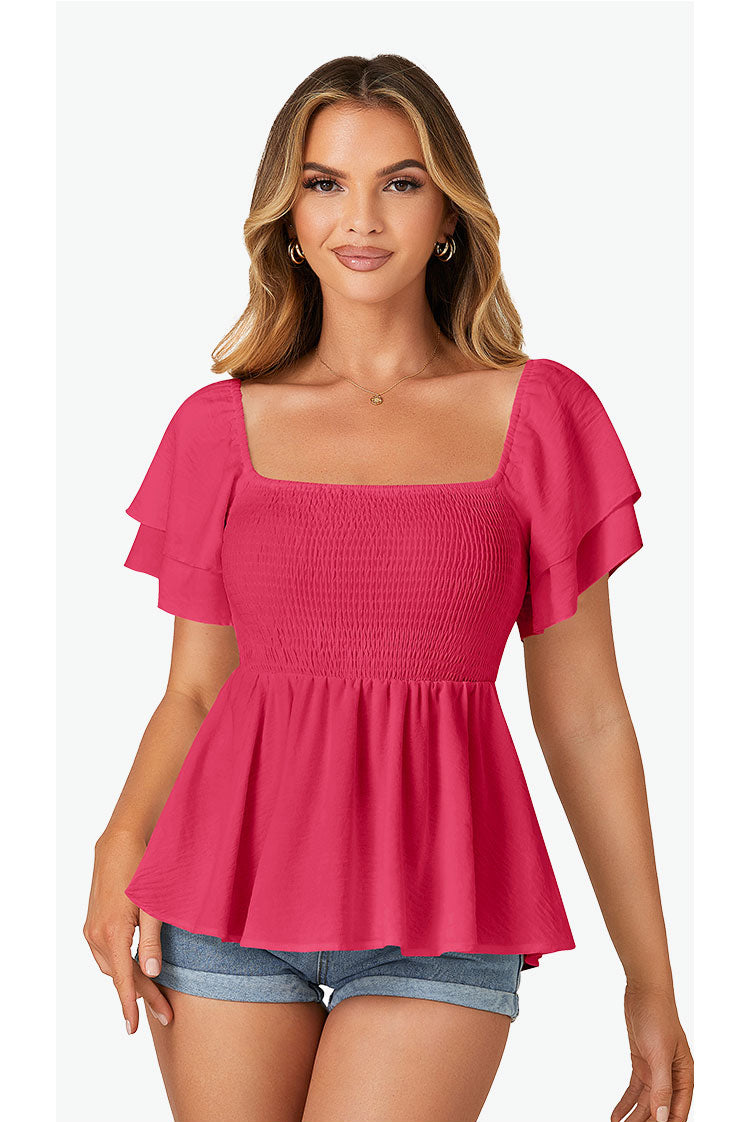 Women's Square Neck Smocked Peplum Top Ruffle Short Sleeve Babydoll Shirred Blouse