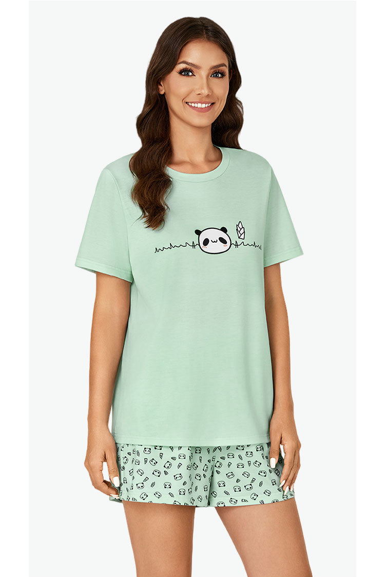 Women's Pajama Sets Cartoon Print Short Sleeve Tee and Shorts Cute Graphic Pis Sleepwear with Pockets