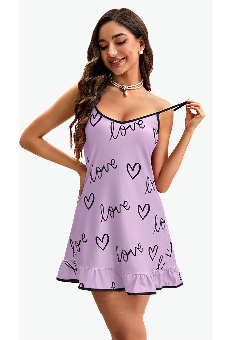 Women's Nightgown VNeck Spaghetti Strap Sleeveless Printed Nightdress Sleepwear